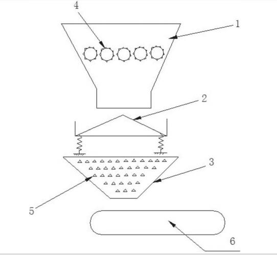 圖中:土壤破碎機(jī)篩分設(shè)備1、篩分勻料振動(dòng)篩2、土壤熱脫附設(shè)備3、破碎齒輪4、熱媒管道5、傳輸裝置6