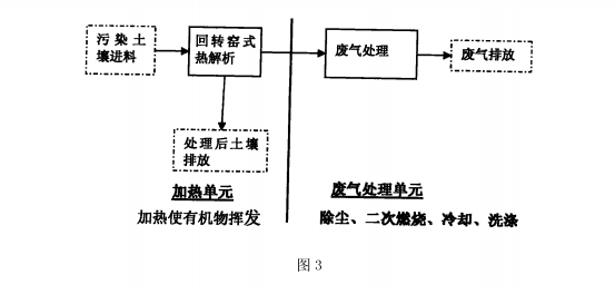 直接熱解析設備,其中,加熱部分包括一次加熱部分與二次加熱部分,送料部分及輔助部分均與一次加熱部分相連接,除塵部分包括一次除塵部分與二次除塵部分,排放部分包括氣體排放裝置與土壤排放裝置;一次加熱部分依次與一次除塵部分、二次加熱部分、急冷部分、二次除塵部分、洗滌部分以及氣體排放裝置相連接,一次加熱部分還與土壤排放裝置相連接,上述組件還分別與監控部分相連接,其中,洗滌部分為洗滌塔,其末端與氣體排放裝置相連接。本發明具有處理量大、能耗低、處理費用低和保持土壤理化性質等優點,能夠有效地將有機物從污染土壤中分離出來并進行處理。