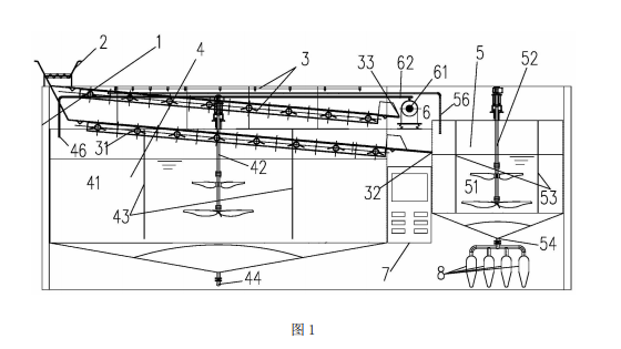 復(fù)合污染土壤淋洗的可移動(dòng)式設(shè)備及方法,該設(shè)備包括:箱體,及該箱體內(nèi)設(shè)有多級(jí)篩分淋洗系統(tǒng)、細(xì)顆粒攪拌清洗系統(tǒng)、粗顆粒旋流清洗系統(tǒng)和大顆粒螺旋清洗系統(tǒng),多級(jí)篩分淋洗系統(tǒng)入口處設(shè)有預(yù)處理篩分破碎裝置以及控制裝置。該設(shè)備通過多級(jí)篩分淋洗系統(tǒng)能夠以濕式篩分方式,將待淋洗土壤篩分為不同粒徑的土壤顆粒,再將不同粒徑土壤以對(duì)應(yīng)方式清洗去除土壤中污染物。由于各系統(tǒng)統(tǒng)一設(shè)在箱體內(nèi),方便移動(dòng),占地小,對(duì)于規(guī)模較小的污染場(chǎng)地可以方便應(yīng)用該設(shè)備進(jìn)行處理;系統(tǒng)對(duì)于不同粒徑土壤顆粒進(jìn)行篩分,根據(jù)污染物在不同粒徑中的分布進(jìn)行分別針對(duì)處理,提高了處理效率,節(jié)約了處理成本,同時(shí)滿足了對(duì)復(fù)合污染土壤的適用性。