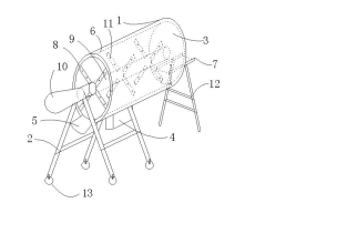 本發(fā)明針對(duì)現(xiàn)有技術(shù)的不足之處提供了一種土壤篩分裝置,解決土壤中有石頭或 有粗塊土壤不利于植物成長(zhǎng)的問題。